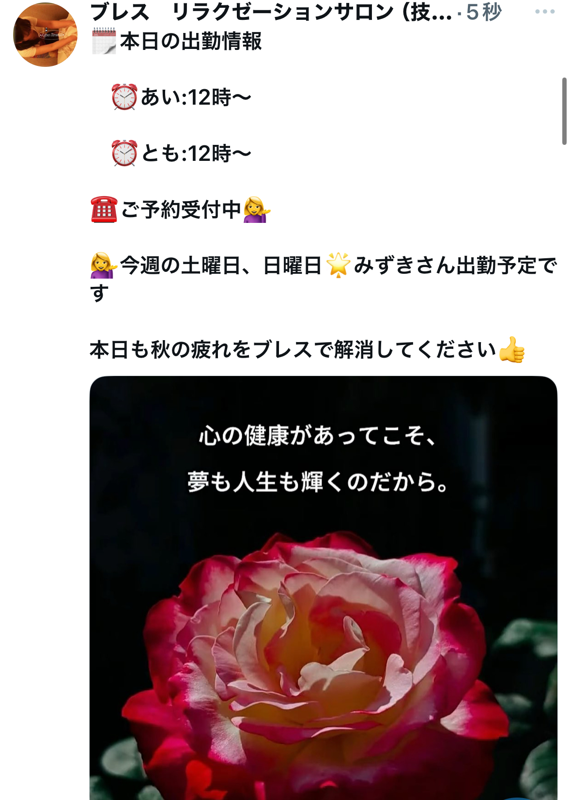 1週間お疲れ様でした♪ブレスで頑張った身体と心をそっと休めてください^^