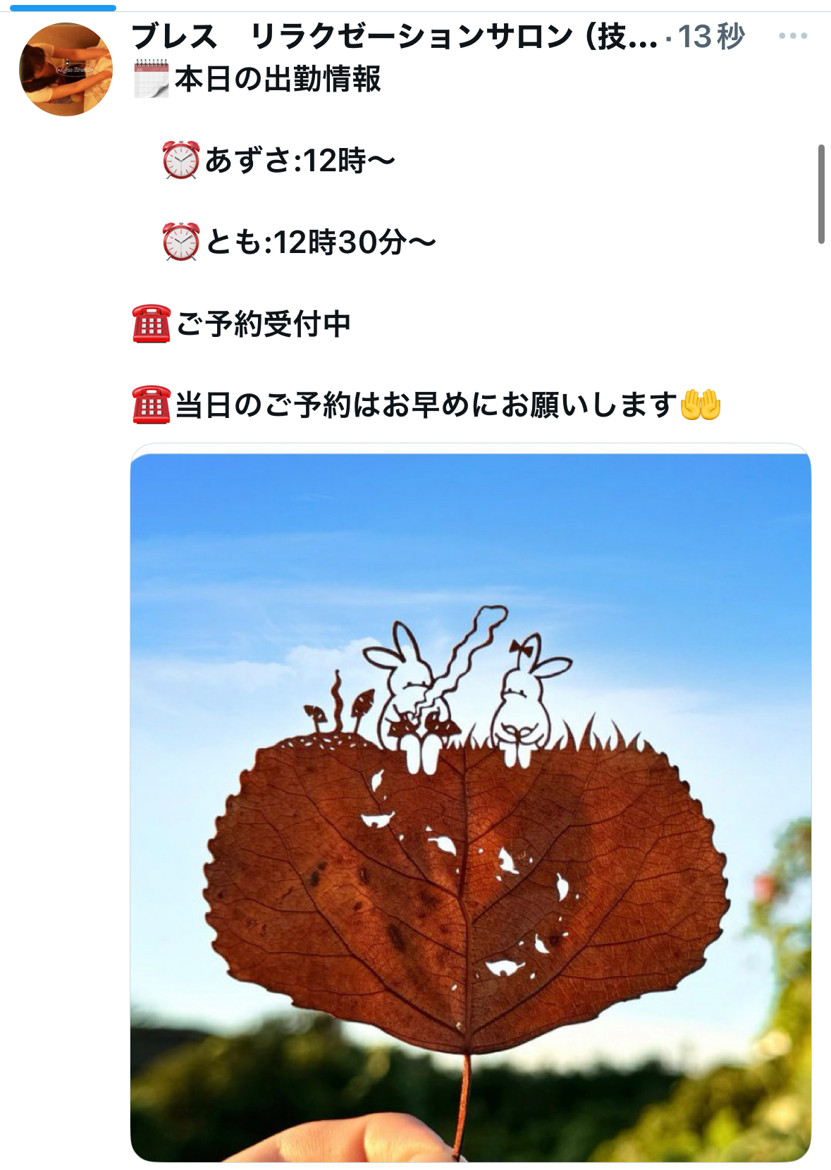 自分を労る木曜日本日もご予約ご来店をお待ちしております♪