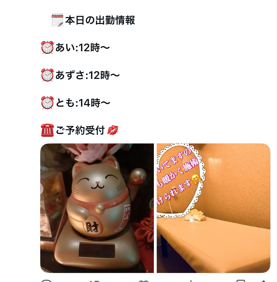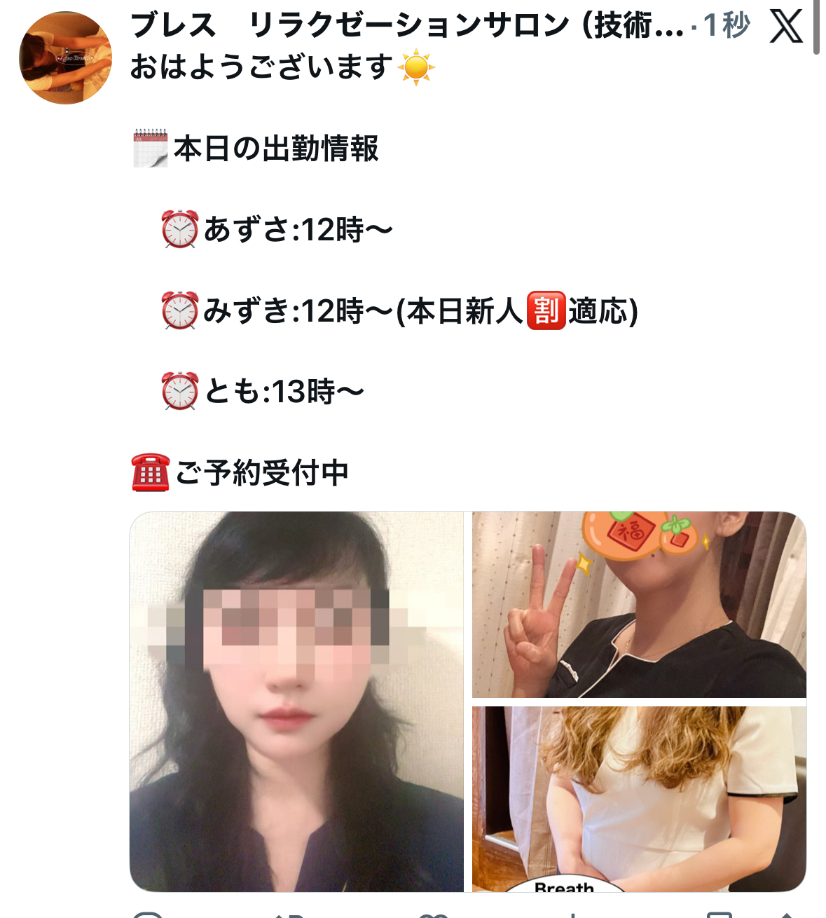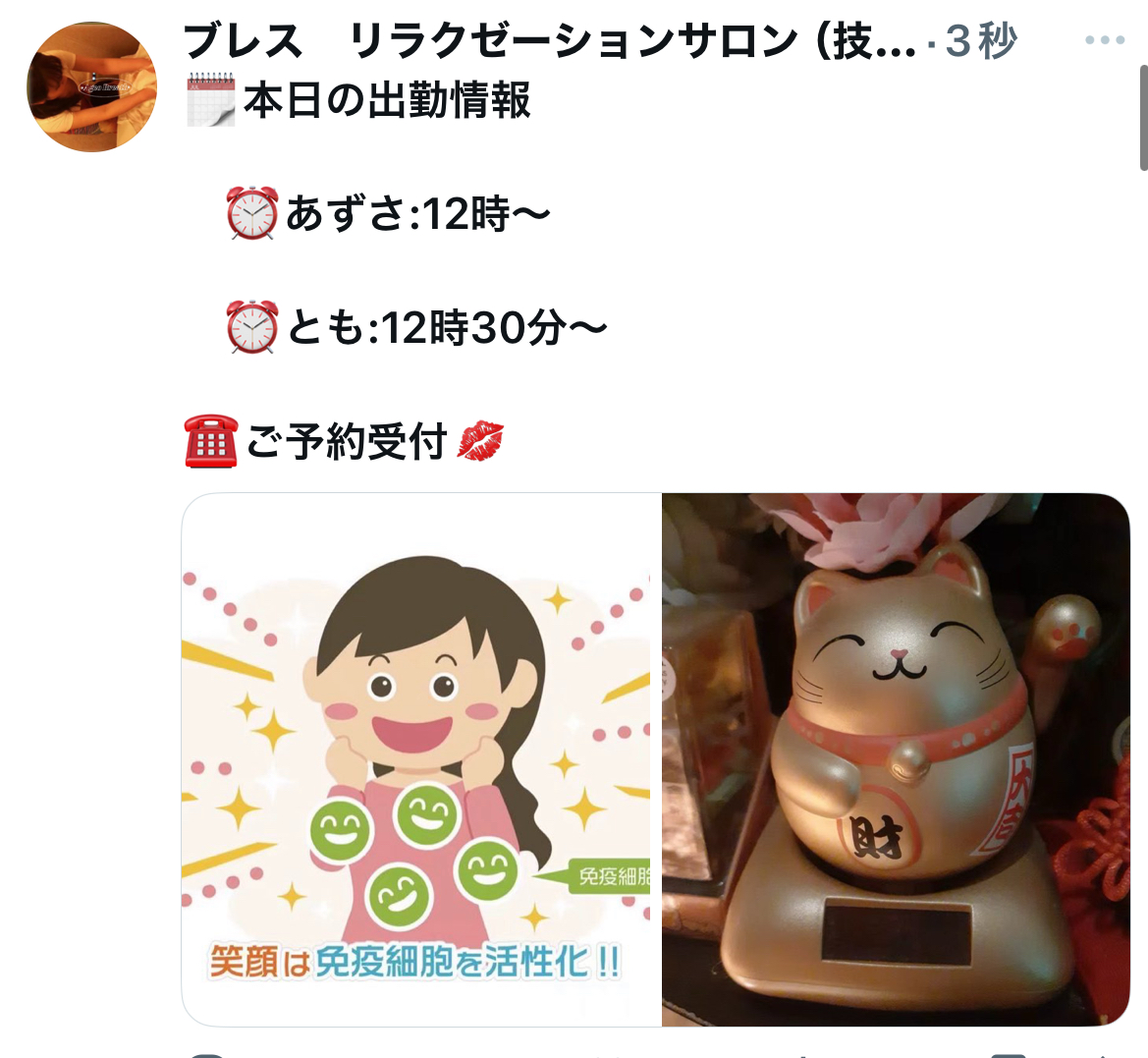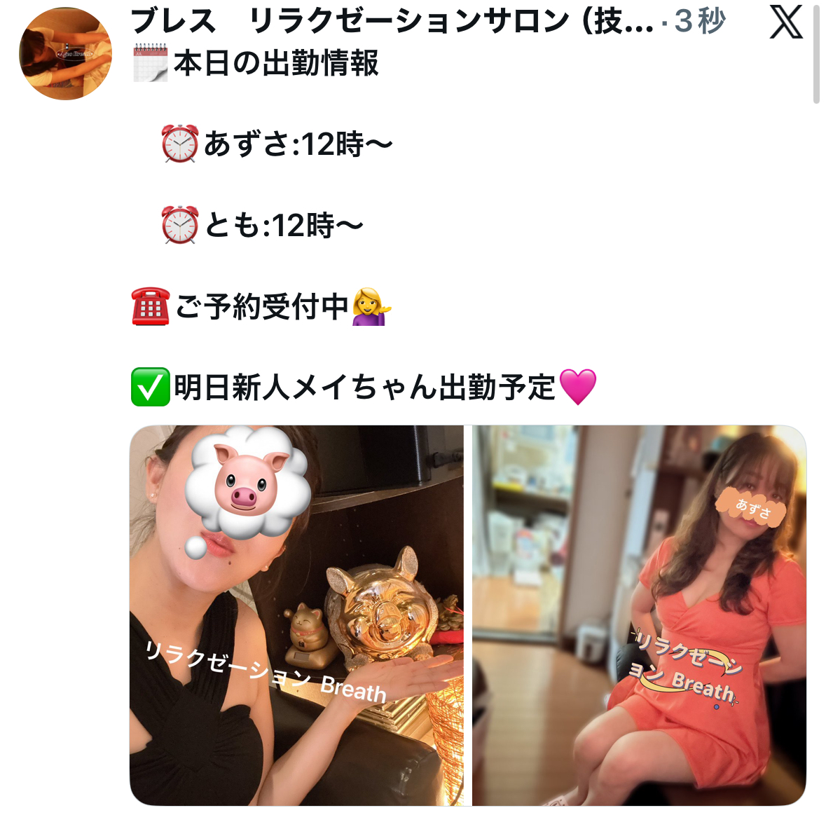 日曜日は頑張った自分へのご褒美DAYブレスの本格マッサージでエネルギーチャージいかがですか^^素敵な方々のご来店をお待ちしております♪