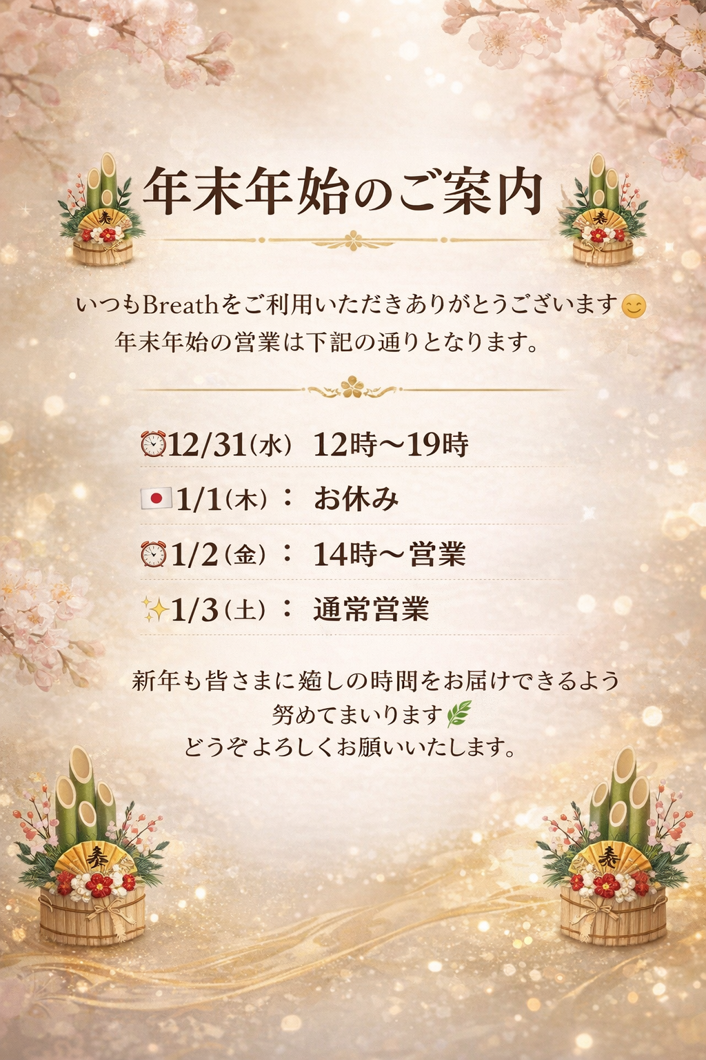 どうぞ良いお年をお迎えください✨ 来年も Breath をよろしくお願いいたします。