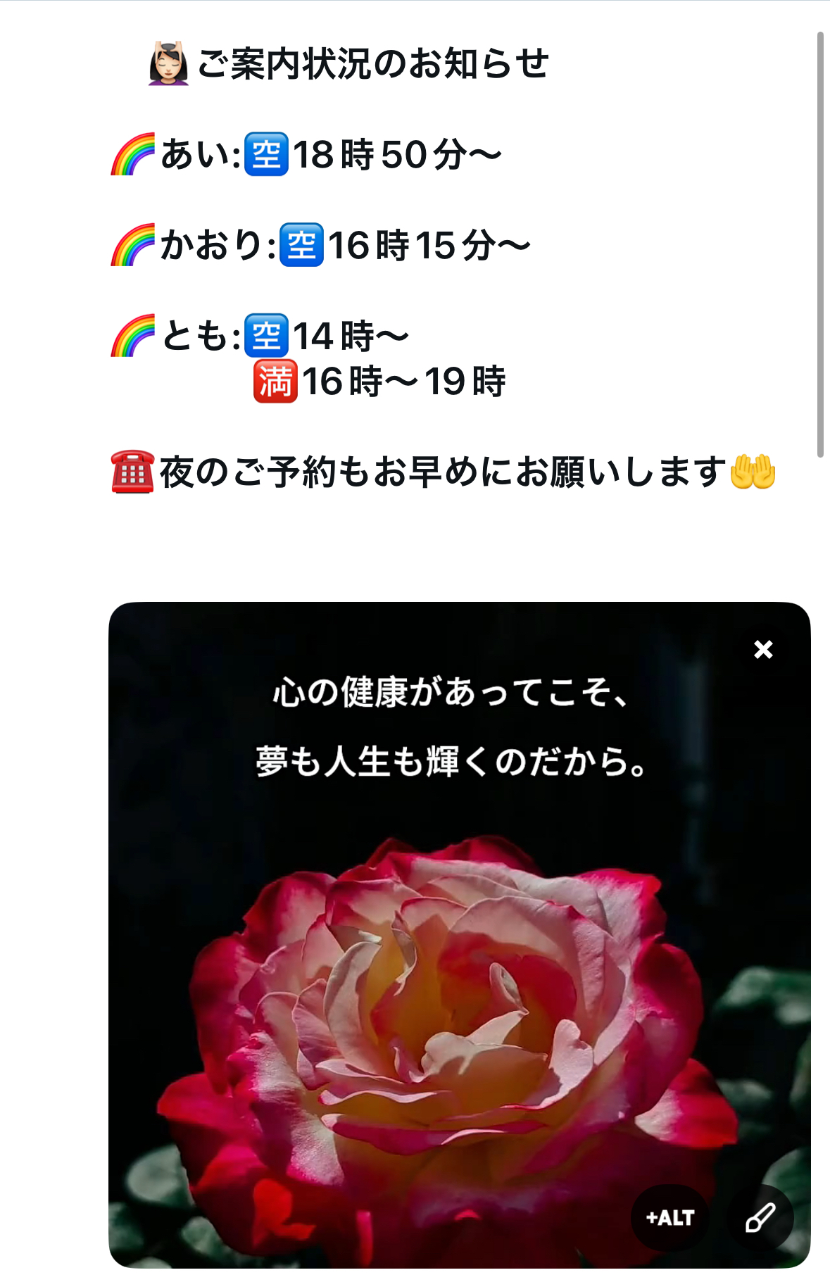 おはようございます^^ 12時から可愛い癒し系わかちゃん空き枠ございます^^今週も良いご縁に恵まれますように。
