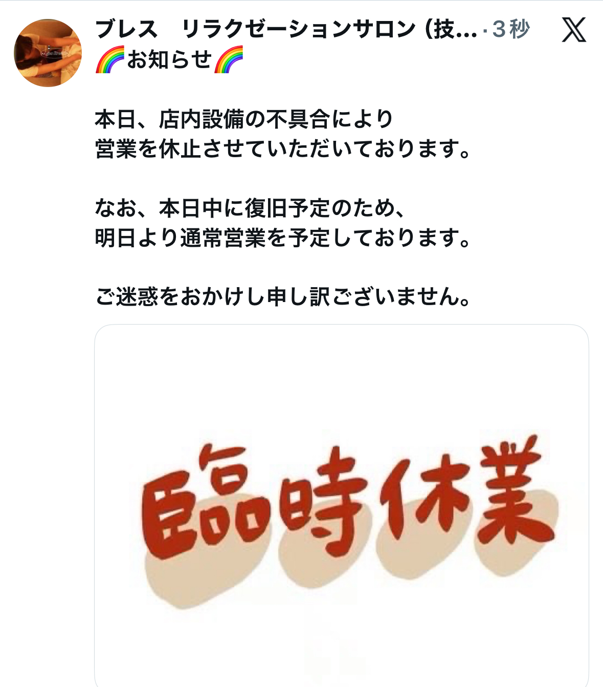 いつもブレスをご利用頂きましで、誠にありがとうございます。